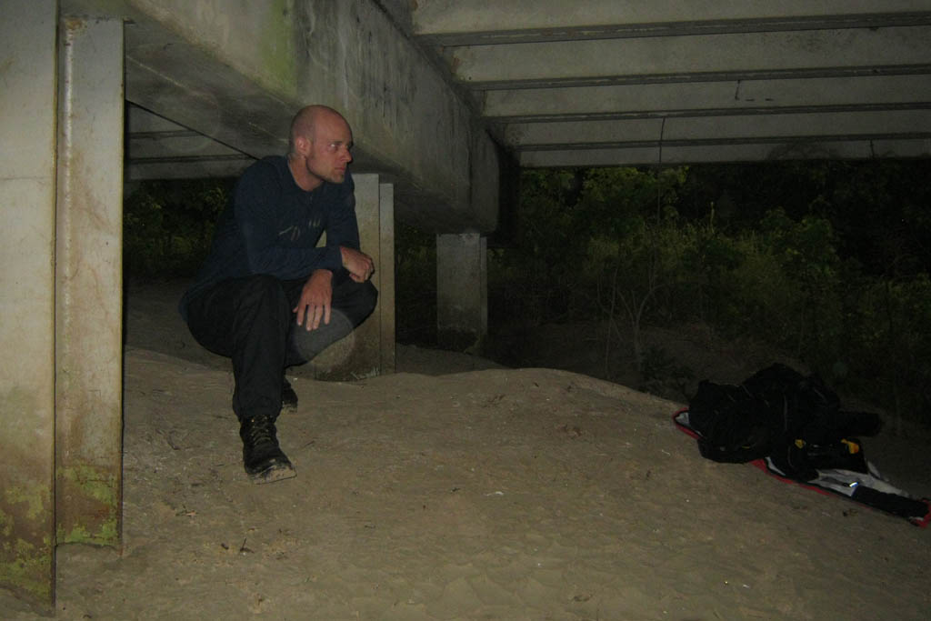 The weather wasn’t on my side yet though, later that day through Texas my intended route was shared by some industrious thunderheads and tornadoes. One gas station clerk commented that the tornado the day before had torn the building’s sign off right in front of her eyes. “Figured the good Lord had a mind to take me right then,” she said, followed by this encouraging comment, “But I’m still here, so maybe he’ll take me today as we’re ‘spectin the same weather this afternoon.” Not 20 miles down the road the weather turned so ominous that I took cover under a bridge for an hour to let it pass.