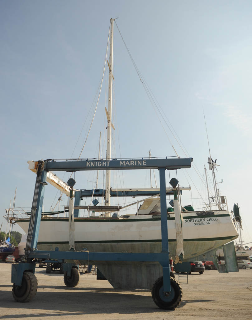 Northern Cross, who has now been in the family for 22 years, has sat lonely in a Maine shipyard since the year 2000. After eleven years out of the water and only visited occasionally by my parents and I, she remains strong though outwardly shows obvious signs of neglect. But to anyone with salt in their blood it’s plain to see that beneath her mask of dirt and flaking paint she’s as ready for the sea as ever. So on the morning of July 22nd we picked her up and moved her to a spot better suited for the work to come. Perhaps only a move of 100 feet, but it was a monumental 100 ft considering it was her first change in scenery for over a decade.