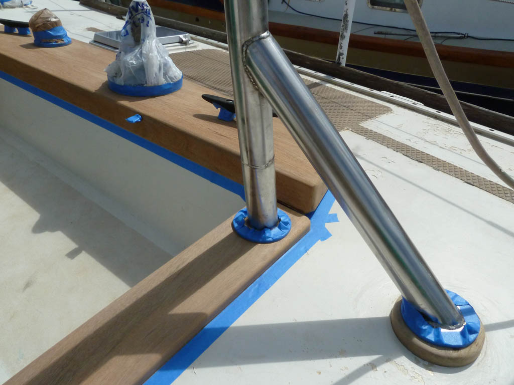 First coat of varnish on the teak. It really started to look good after the third coat!