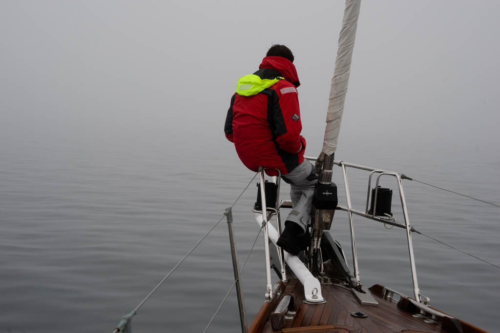 The fog cleared slightly as we made our way through the canal with a favorable current. At times we were making 14 knots over the ground, fun but a little unnerving.