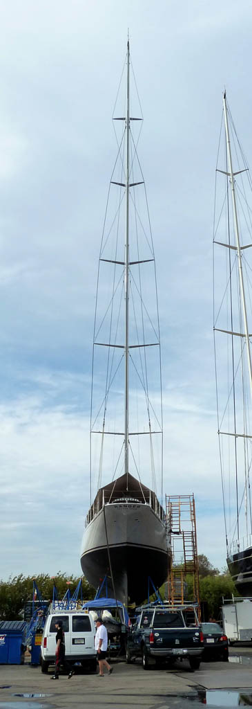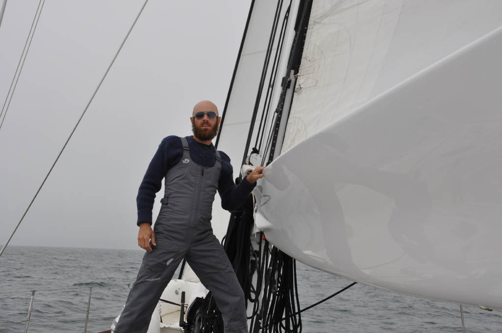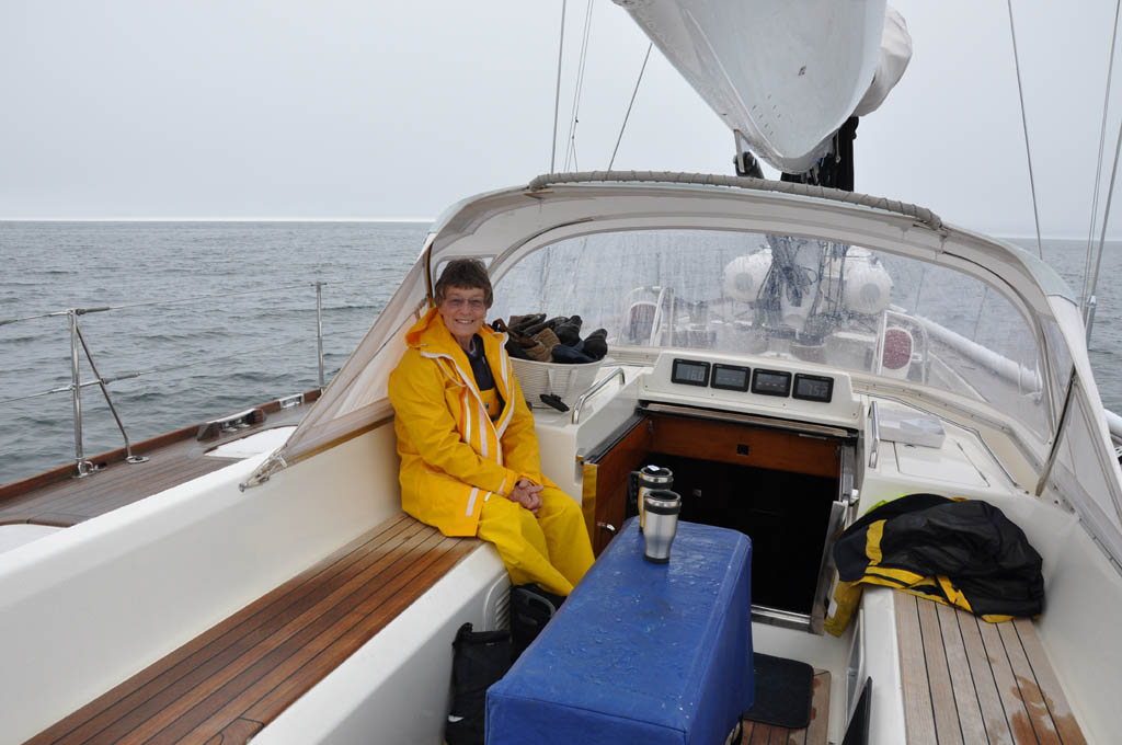 The next morning the visibility improved slightly and the wind cooperated for a delightful sail to Newport. Close reaching in 8-10 knots of breeze, we made our way across the sound and through a pair of 130′ J-class yachts racing in the fog.