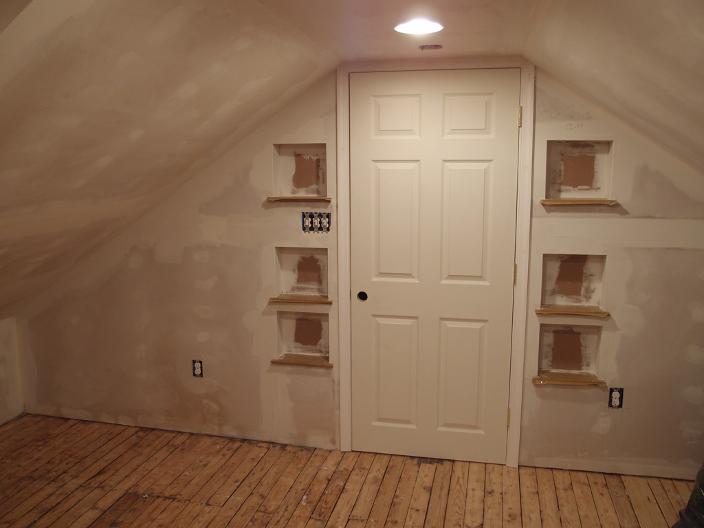 Finally getting to the finish trim stage, all of which was recycled from unused sections of the original hardwood floor.