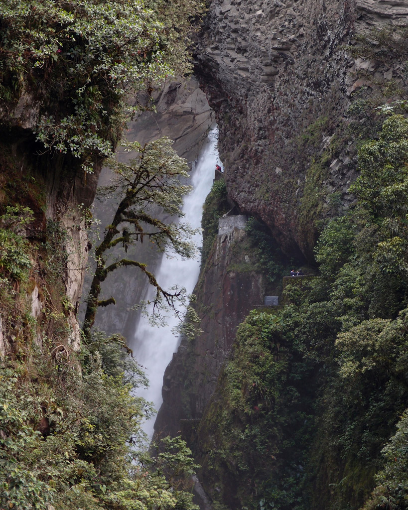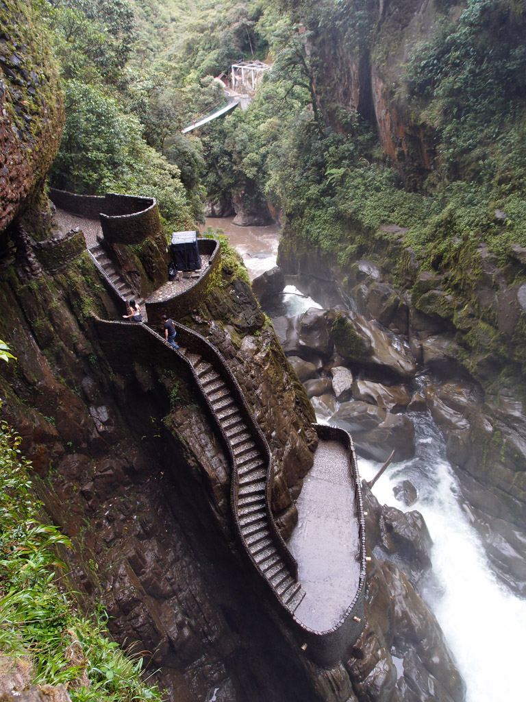 Freddy navigates the increasingly cave-like trail that leads to the precipice of the Pailón del Diablo waterfalls.