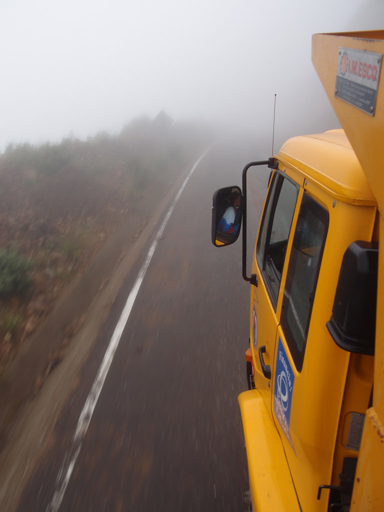 Hidden by the fog were drop-offs at every switchback, the occasional view was straight down thousands of feet to the valley floor.
