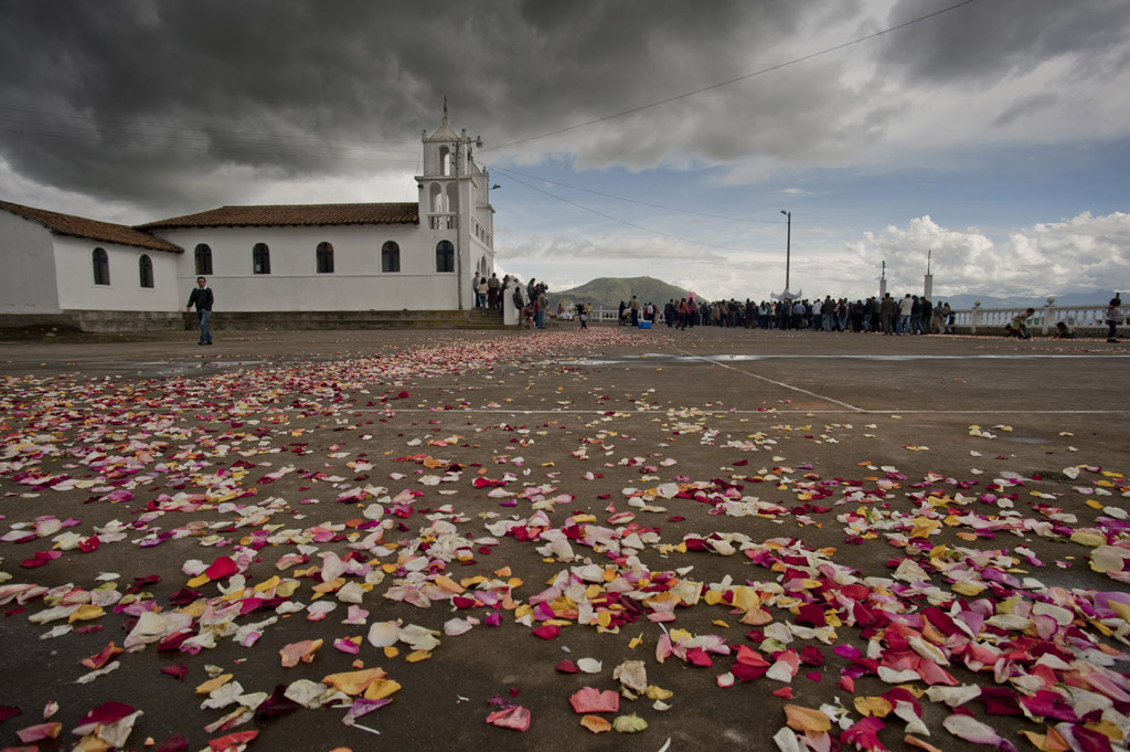 The Iglesia de Pichalo after the procession had left it's trail of flower petals. Note Mount Putzalahua in the background.