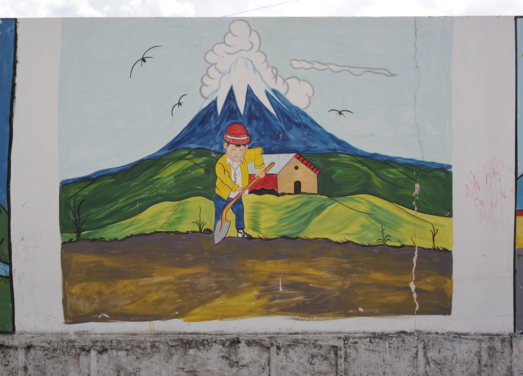 One of many murals on the wall of a local school, this one of the farmlands at the foot of Cotopaxi.