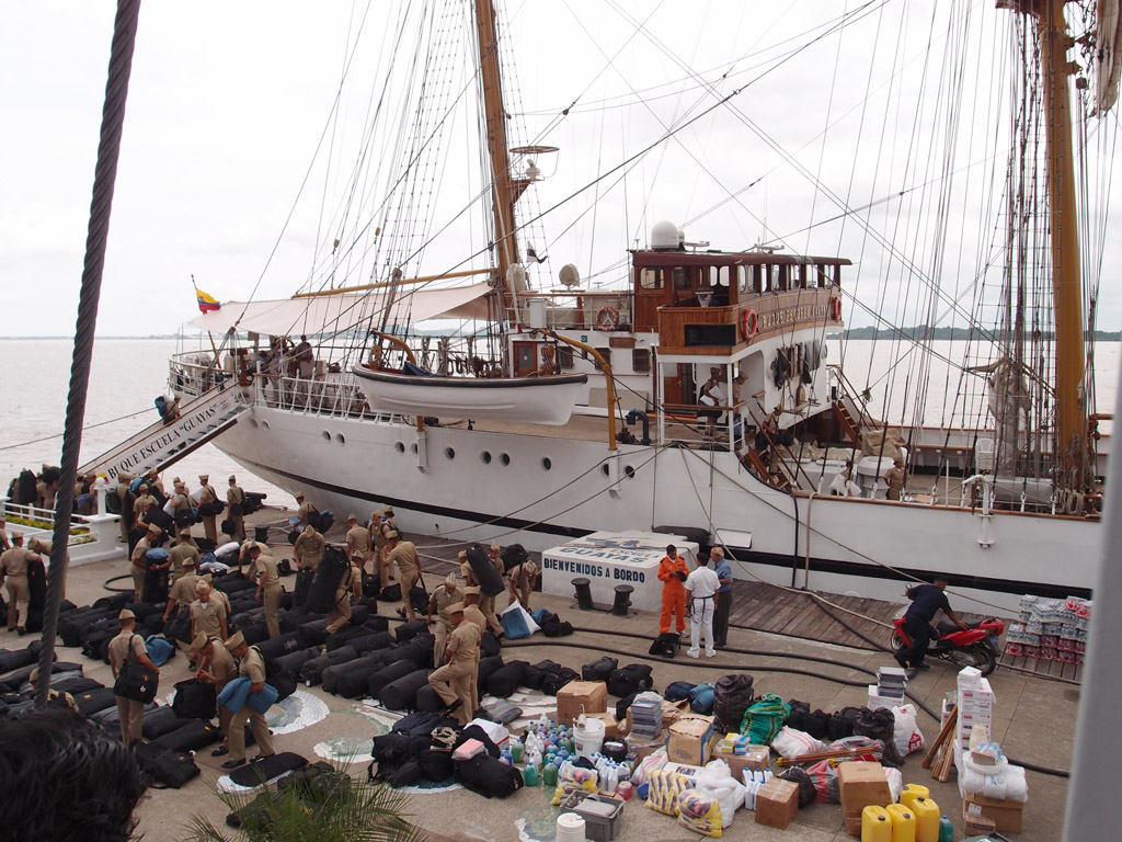 The Buque Escuela Guayas training ship prepares to leave port.