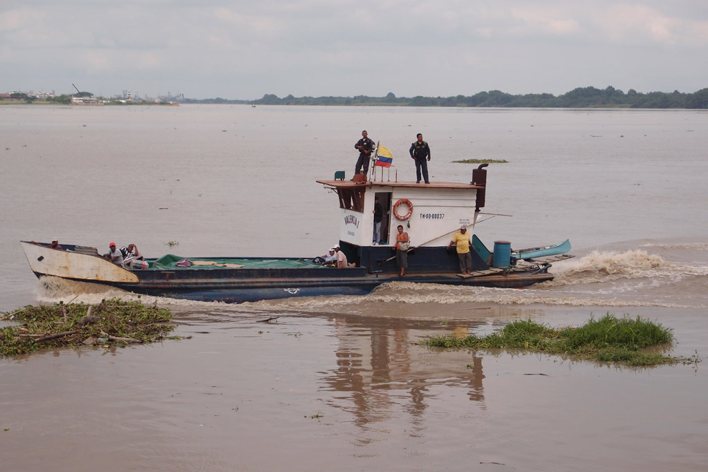A workboat chugs upstream on the Guayas River.