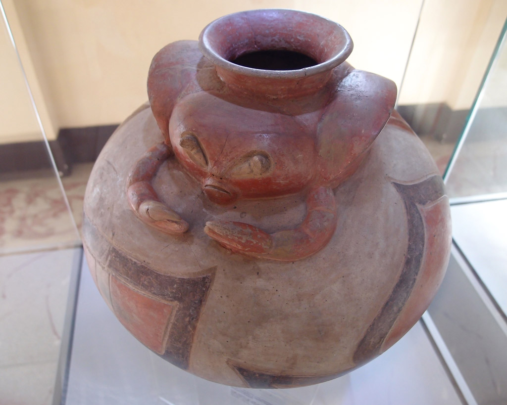 A crab themed water carrying vessel in the Museo Presley Norton which exhibits a large collection of pre-colonial Ecuadorian Indian artifacts.