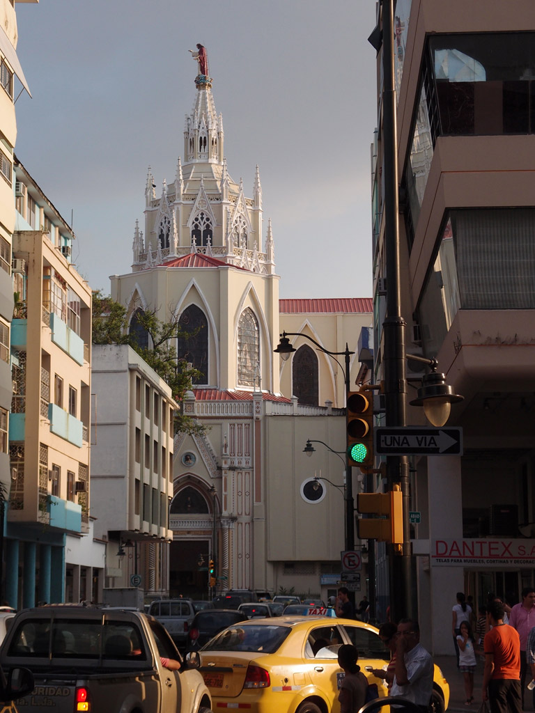 The Guayaquil Cathedral in evening light.