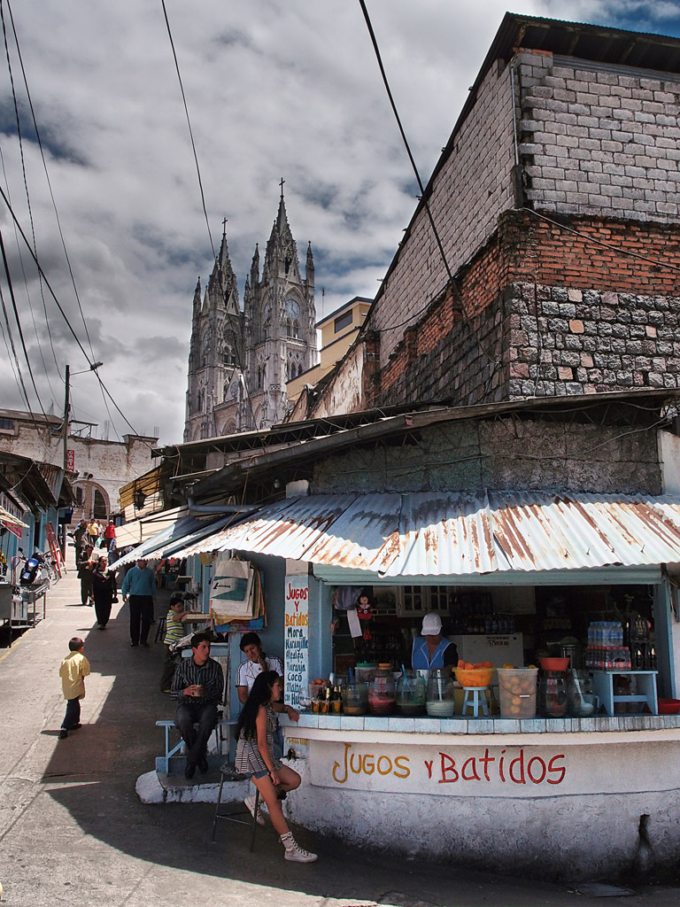Juice and shakes for sale near the Basílica del Voto Nacional.